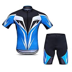 Lixada Herren Radtrikot Set, Atmungsaktiv Quick-Dry Kurzarm Radsport-Shirt + Gel Gepolsterte Shorts, (Blau, M)