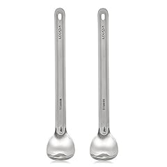 Lixada Titanium Lange Griff Löffel mit poliert Schüssel für Picknick (2 Stücke)