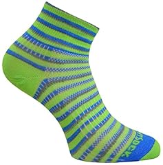 Wrightsock Profi Sportsocke, Laufsocke Modell Coolmesh II in grün blau grau, Anti-Blasen-System, doppellagig, Quarter lang gestreift, Gr. L