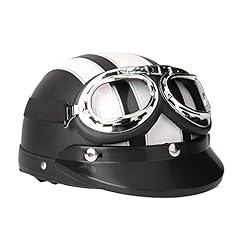 KKmoon Motorrad Roller Open Face Halbes Leder-Helm Winter Winddichter Helm mit Visier UVschutzbrille Retro Vintage Style 54-60cm