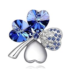 HuntGold 1 X Frauen Mädchen Süß glücklich vier Blatt Klee Form Kristall Diamant Brosche Stoff Bruststift (Silber & Dunkelblau)