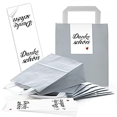 25 hell-graue Papiertüten Geschenktasche Henkel-Tüten Boden 18 x 8 x 22 cm kleine Papiertaschen + Aufkleber + DANKE-SCHÖN rot Verpackung give-away Kunden-tüte Geschenktüte