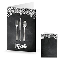 10 Stück Menükarte Speisekarte SPITZE schwarz weiß Karte MENÜ bedruckbar beschreibbar Besteck Tisch-Deko Hochzeit Geburtstag Tafelkreide vintage look edel