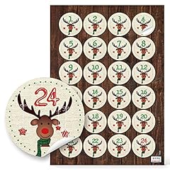 24 Adventskalenderzahlen 1 bis 24 Zahlen Aufkleber HIRSCH rot grün für Kinder Sticker Adventskalender basteln 4 cm Weihnachtkalender mit Papiertüten selbermachen Nummern-Aufkleber
