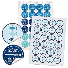 SET 24 SCHÖN DASS DU DA BIST Aufkleber + 24 FISCHE runde selbstklebende maritime Sticker blau türkis Etiketten Verpackung Geschenke Kommunion Tischkarten basteln Hochzeit Geburtstag