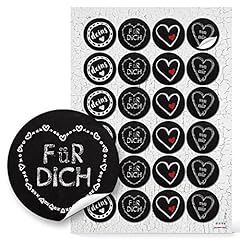 48 runde AUFKLEBER HERZ schwarz rot weiß FÜR DICH VON MIR DEINS Geschenkaufkleber Kreidetafel-Look give-away Geschenk-Verpackung Sticker 4 cm Gastgeschenk Mitgebsel Papiertüten zukleben