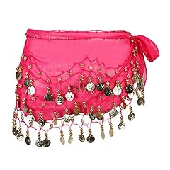 Eleery Damen Frauen Bauch Tanzen Schal 3 Schicht Chiffon Gürtel Mit 98 Münzen (Rosa Rot)