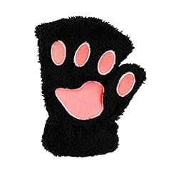 Eleery Handschuhe Winter dicke Handwärmer für Damen Outdoor Katzenhandschuhe Fingerlose Plüsch Katze Halbhandschuhe (Schwarz)
