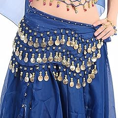 Eleery Damen Frauen Bauch Tanzen Hüfttuch Rock Schal 3 Reihen Chiffon Gürtel Mit 98 Münzen Kostüm Karneval Fasching Party Bauchtanz Rock