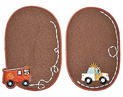 alles-meine.de GmbH 2 TLG. Set - Flicken oval / Bügelbild - Auto Fahrzeuge - braun - 8 cm * 11,5 cm - oval - Bügelbilder - Aufnäher zum Bügeln und Aufnähen / Applikation für Jung..