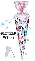 alles-meine.de GmbH mit 3-D Glitzer Effekt ! - Schultüte - Schmetterlinge - bunt - 85 cm / 12 eckig - Organza Abschluß - Zuckertüte - mit / ohne Kunststoff Spitze - für Mädch..