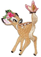 alles-meine.de GmbH Bügelbild - Disney - REH Bambi mit Schmetterling - 7 cm * 9,8 cm - Aufnäher Applikation - Rehe / Hirsch - gestickter Flicken - Jungen & Mädchen - Waldtier..