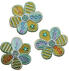 alles-meine.de GmbH 3 TLG. Set _ Blume - grün - 3,7 cm - Bügelbild / Aufnäher - Applikation - Blumen Blüte grün Blüten - Aufbügler mit Pailletten grüne Glitzer - Blumenapplik..