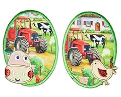 alles-meine.de GmbH 2 TLG. Set ovaler Flicken / Bügelbild - Traktor Bauernhof - 7,5 cm * 10 cm - oval - Bügelbilder - Aufnäher zum Bügeln und Aufnähen / Applikation für Jungen Ki..