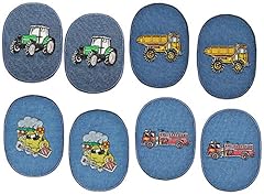 alles-meine.de GmbH 8 Stück - ovaler Flicken / Bügelbild Jeans - Fahrzeuge - 8,5 cm * 11,5 cm - oval - Bügelbilder - Aufnäher Aufnähen und Bügeln / Applikation für Jungen Kinder ..