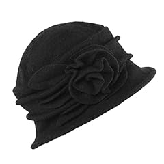 West See Damen Vintage Wolle Cloche Bucket Hut Beret Topfhut mit Blumendetail Wintermütze (schwarz)