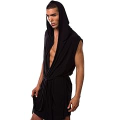West See Herren Ärmellos Reizvolle Bademäntel Schlafanzug mit Kapuze Nachtwäsche Baderobe (DE M(Herstellergrößer L), Schwarz)