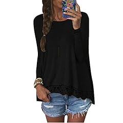 West See Damen Langarm Spitze Hemd Shirt Bluse Loose Casual Damenbluse (XL, Schwarz)