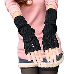 West See Damen Strick Winter fingerlose Handschuhe weiche warme Fausthandschuhe Armstulpen Handwärmer (Schwarz)