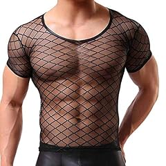 YiZYiF Herren Unterhemd Transparent Unterwäsche Stretch Gaze Muskelshirt Kurzarm T-Shirt Tops Clubwear Schwarz M-XL (Schwarz, L)