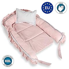 Babynest nestchen Baby Nest - babynestchen Kokon kuschelnest für Neugeborene SET mit Kissen Bett liegekissen 90 x 60 cm Grau-Rosa mit Rüsche