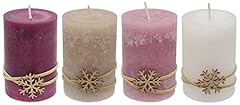 ZauberDeko 4 Adventskerzen Kerzen Stumpenkerzen Beere Beige Creme Schneeflocke Advent Weihnachten Deko Tischdeko