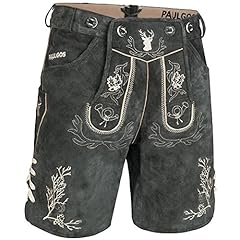 PAULGOS Herren Trachten Lederhose + Träger, Echtes Leder, Kurz in 3 Farben Gr. 44-60 HK3 (56, Grau)