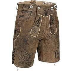 PAULGOS Herren Trachten Lederhose + Träger, Echtes Leder, Kurz in 3 Farben Gr. 44-60 HK5 Antik