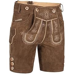 PAULGOS Herren Trachten Lederhose + Träger, Echtes Leder, Kurz in 3 Farben Gr. 44-60 HK5 Antik (Whiskybraun, 54)