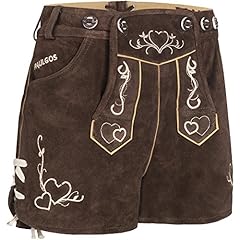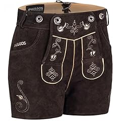 PAULGOS Damen Trachten Lederhose + Träger, Echtes Leder, Sexy Kurz, Hotpants in 2 Farben Gr. 34-42 H2 (36, Dunkelbraun)