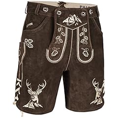 PAULGOS Herren Trachten Lederhose + Träger, Echtes Leder, Kurz in 3 Farben Gr. 44-60 HK4 (Dunkelbraun, 58)