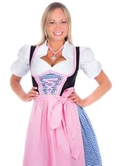 Edelnice Trachtenmode Mini Dirndl 3-TLG. blau kariert rosa Borte inkl. passender Bluse und Schürze Gr. 32-52