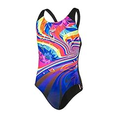 Speedo Damen SwirlyWave Placement Powerback Badeanzug Mehrfarbig (Bk/Psy Red/Brig Zes), 40