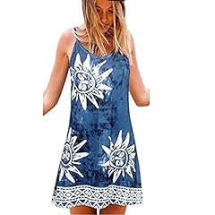 Sannysis Damen Sling ärmellos V-Ausschnitt Cocktailparty Strand-Minikleid (XL, Blau)