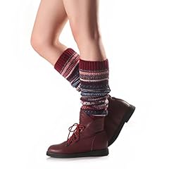 Sannysis 1 Paar Damen Gestreift Gestrickt Strümpfe Bein Plüsch Abdeckung Button Trim Socks