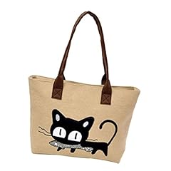 Sannysis Frauen-Schulter-Beutel-Segeltuch-Tasche Niedliche Katzen-Tasche Büro-Mittagessen-Beutel (khaki)