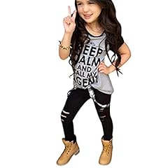 Sannysis Kleinkind -Mädchen-Ausstattungs-Kleidung-Druck-T-Shirt Tops + Long Pants (130, Grau)