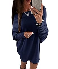 Minetom Damen Elegant Schulterfrei Langarm Lose PulloverKleid Strickkleid Sweater Oberteile Oversized Sweatshirt Tops Lang Marineblau DE 40