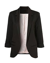 Minetom Damen Elegante 3/4-Arm Blazer Sakko Einfarbig Slim Fit Vorne Offnung Tasche Tailliert Geschäft Büro Kurzjacke Jacke Mantel