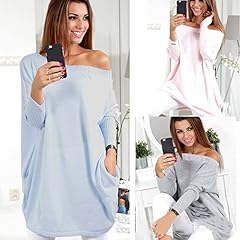 Minetom Damen Elegant Schulterfrei Einfarbig Langarm Stretch Pullover Pulli Kleid Oversize Strickkleid Frauen Fledermausärmel Lose Sweatkleid Outwear