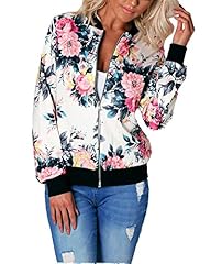 Minetom Damen Reißverschluss Blumen Gedruckt Bomber Jacke Piloten Baseball Mantel Outwear Tops Coat Rot DE 34