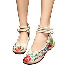 Minetom Damen Elegant Doppel-Bgel Ethnische Bestickte Schuhe Tanzschuhe Niedrigem Keil Ballerina Mary Jane Blumen Flache