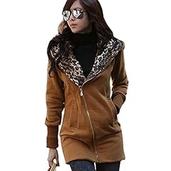 Minetom Damen Kapuzen Pullover Leopard Jacke Hoody Hooded Longshirt Sweatjacke Fleece Jacke Leopard Kapuzenpullover Pulli Mantel Herbstjacke Lange Pullover Hoody Zipper Dunkelgrau Schwarz Gelb