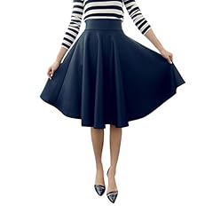 Minetome Damen Retro Elegant Faltenrock Sexy Knielang Hohe Taille glockiger Midi-Rock ( Dunkelblau EU S )