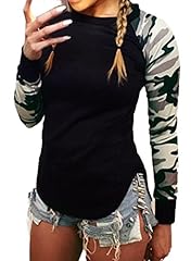 Minetom Damen Herbst Winter Camouflage Rundhals Langarm Hemd Shirt Lässige Bluse Tops Camouflage DE 34