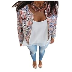Minetom Damen Frühling Blouson Mode Floral Baseball Mantel Tops Coat Bomberjacke Bikerjacke Reißverschluss Fliegerjacke Kurzjacke Floral DE 40