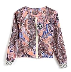 Minetom Retro Damen Jacket Blazer Stehkragen Langärmlig Reißverschluss Flora Blumenmuster ( DE 34 )