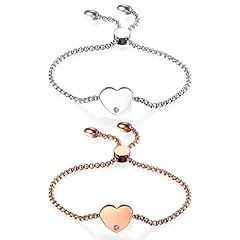 JewelryWe Schmuck Damen Armband mit Gravur, Edelstahl Strass Hochglanz Poliert Herz Verstellbar Charm Armkette Armreif, Rosegold/Silber