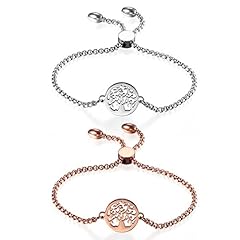 JewelryWe Schmuck Damen Armband, Edelstahl Hohle Baum des Lebens Runde Verstellbar Charm Armkette Armreif, Rosegold Silber