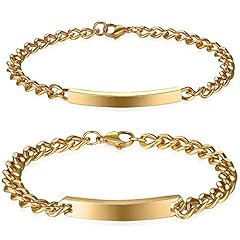 JewelryWe Schmuck 2pcs Herren Damen Armband, Lieben Freundschaftsarmband, Glänzend Poliert, Edelstahl, Gold, mit kostenlos Gravur